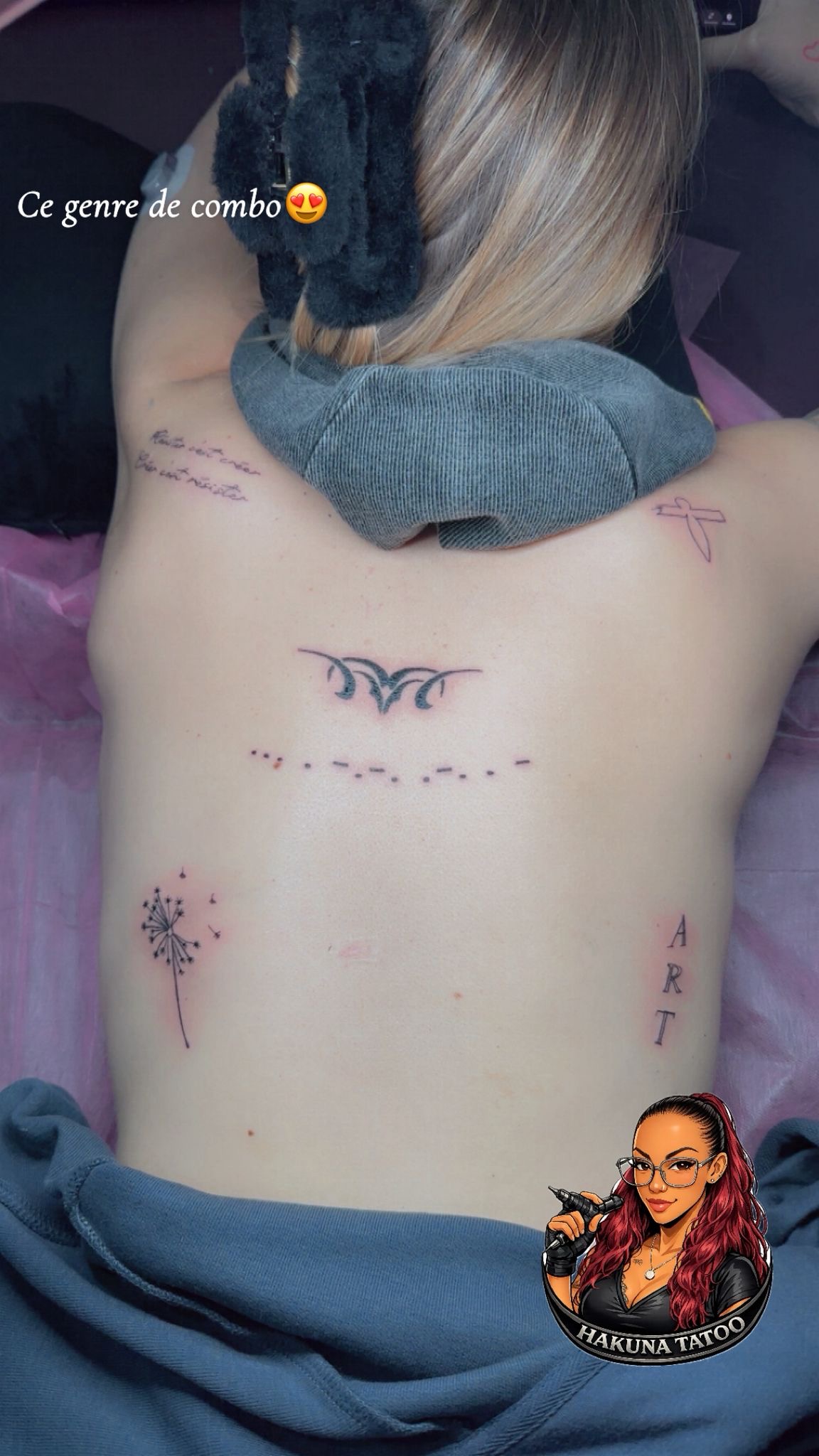 Accueil dans un environnement stérile et confortable. Pose du stencil, validation, puis réalisation avec soin et patience.